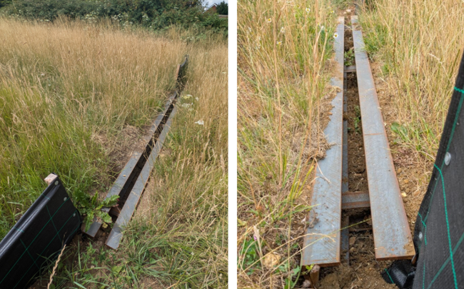 In spring 2025, we installed special newt fencing to prevent newts from entering the work area. The fencing stretched 335 metres and covered about 3,500 square metres. We also added three special “newt grids” to enable the farmer who owned the land to continue to access his field with his equipment. These newt grids are steel structures with narrow gaps that allow vehicles to pass but are designed so newts can’t cross them. This prevents newts from entering the work site without restricting the movement of heavy machinery. A site visit helped us agree on the best locations for these grids and sped up the process of getting the fencing installed, making the process smoother for everyone.