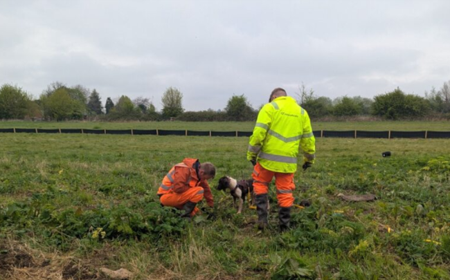 Meet Flo, our specially trained sniffer dog! Flo helped us locate newts within the work area.