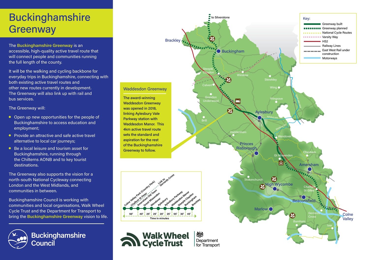 The Buckinghamshire Greenway is our vision for a continuous walking, wheeling and cycling route that goes through the length of Buckinghamshire (over 50 miles).