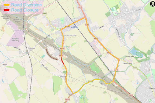 Between 31 October and 5 November, final works will be taking place by HS2 Ltd on the newly constructed Stoke Mandeville Relief Road. This means there will be a road closure on the A4010 requiring vehicles travelling northbound towards Stoke Mandeville to follow a diversion from the Terrick junction via Nash Lee Road (B4009) and Wendover Road (A413) to enter Stoke Mandeville from Station Road (A4010).