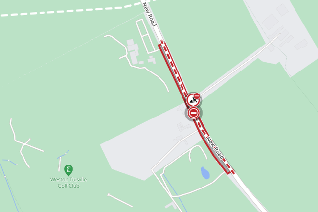 New Road, Weston Turville (between the golf club and Weston Turville) is currently closed. This will continue until 15 November for works related to the Hampden Fields development.