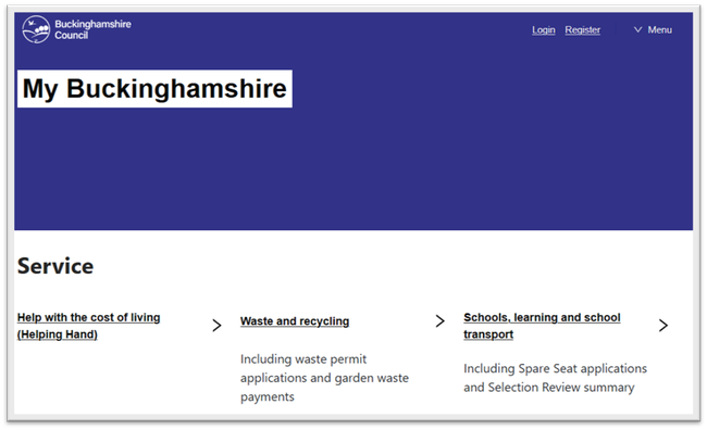 My Buckinghamshire is a customer account system launched in 2024 to replace the previous district and county systems.